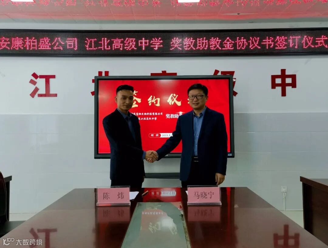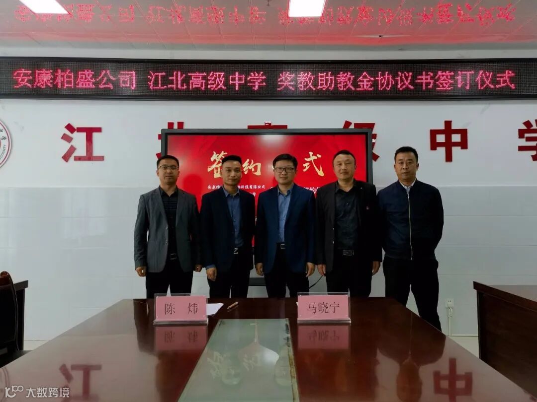 5月11日,安康柏盛富硒生物科技有限公司(以下简称:安康柏盛公司)与江北高级中学在学校行政会议室举行了江北高级中学“柏盛奖教金”签约仪式,安康柏盛公司副总经理陈炜以及校级领导出席签约仪式。