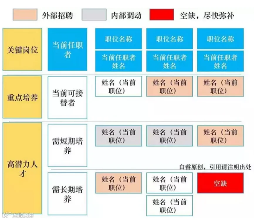 需要注意的是,必须由CEO亲自参加和主持人才盘点会,并作为组织人才发展的第一责任人;否则,HR是无法在公司推动这个项目的。
