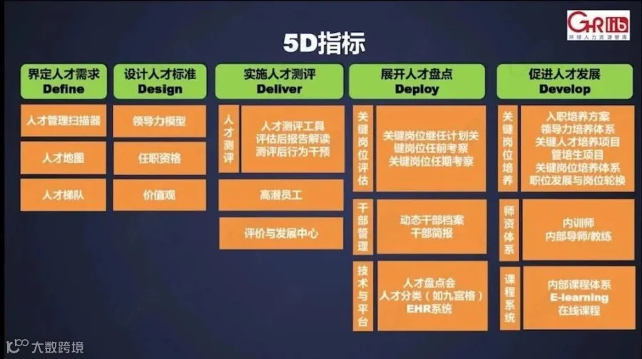 在苏宁大学前执行校长罗波的分享中,我总结了人才盘点的5个步骤,涵盖了人才盘点的全流程工作,也叫5D模型: