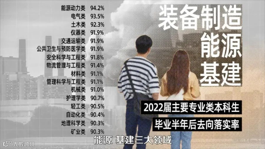 据麦可思研究院最新发布的《2023年中国本科生就业报告》显示,2022届本科生毕业半年后,更容易找到工作或考上研究生的,就是装备制造、能源、基建三大领域。