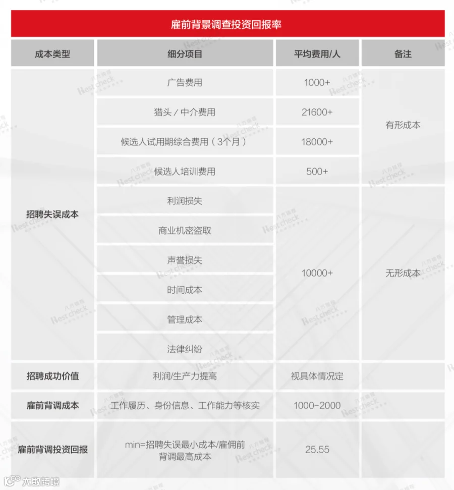 做背景调查,也是人力成本支出之一。