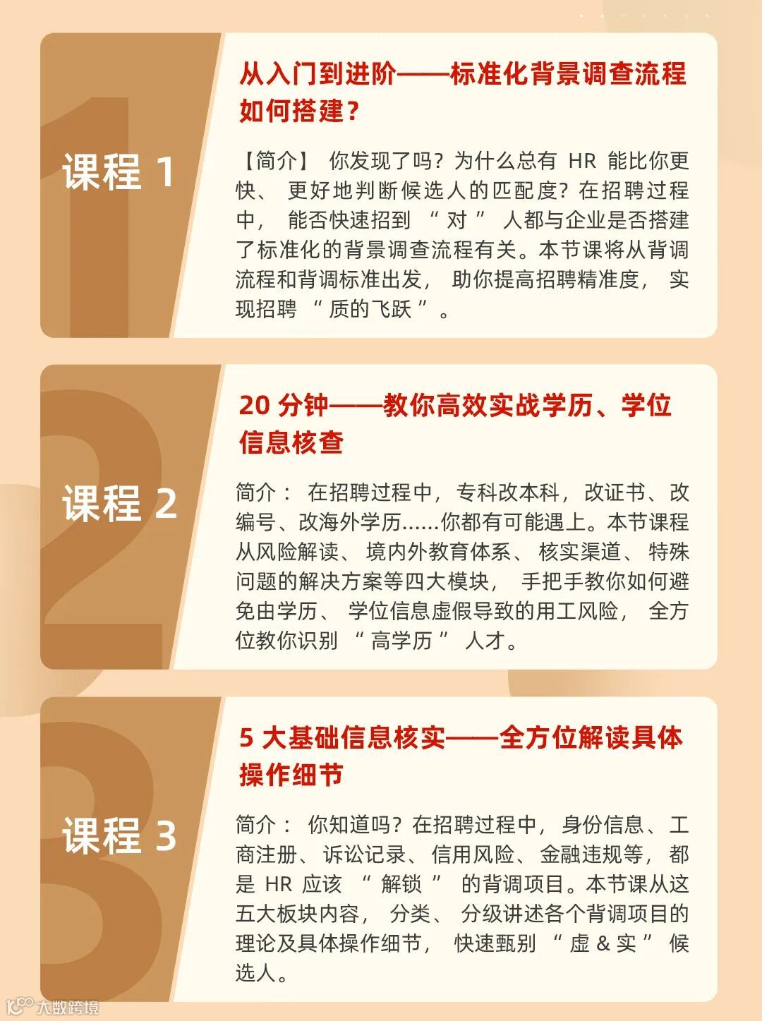 6门背调实践课助力HR全面把控入职前雇佣风险,让我们一起与八方锦程人才研究院院长James一起学习!(点击下方,免费观看先导课>>>)