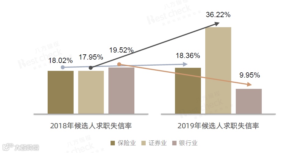 由中国领先的职业征信机构——八方锦程发布了《2019年金融机构候选人求职信用分析报告》(以下简称《报告》),分别从金融机构——银行业、保险业、证券业三大分支分析了候选人求职信用,多维度地为金融企业诠释候选人的求职信用现状,助力企业找到对的人。