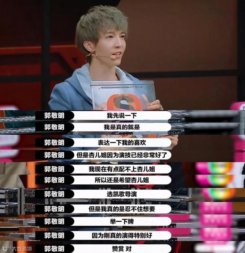 在《误杀》一场戏中,她零失误演完了长达20多分钟的片段,得到在场4位导演的高度评价,郭敬明更是直接给她亮出S卡,说自己有点“配不上”杏儿姐。