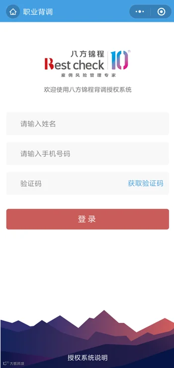 八方背调小程序的候选人“在线授权”功能,只需要候选人通过线上手机号码登录、短信验证码校验身份进入授权页面,填写个人信息、上传资料并且完成电子签署确认即可完成授权流程。