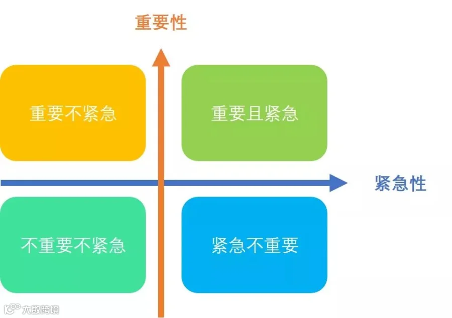 人讲事分轻重缓急,教育我们先处理重要的、紧急的事情。而现代时间科学管理中也用到了相似的时间四象限管理法,根据工作的紧急及重要性,对工作进行分类处理,划分为四个象限。