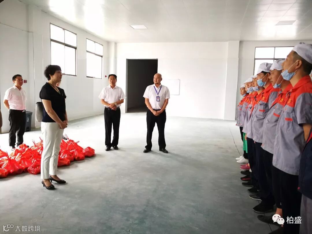 随着夏季高温酷暑的来临,车间一线工人工作生产的体能消耗很大,为保障员工身体健康,保证安全生产,安康柏盛科技公司联合县总工会开展了“夏日送清凉”活动,在炎炎的夏日给一线作业员工送去丝丝凉意。