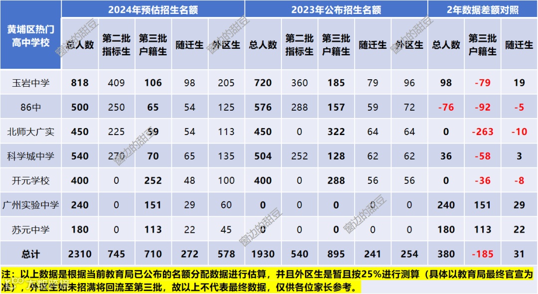 3、据传今年黄埔区所有区属高中需分给外区生的名额将从15%提高到25%,如果属实,这将导致今年黄埔区各区属高中在第三批次的户籍生名额均有减少,竞争更为激烈。
