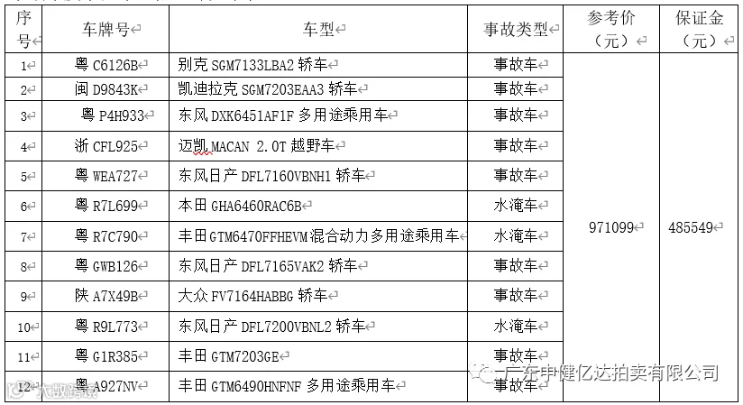 事故车及水淹车一批(详见下表)。