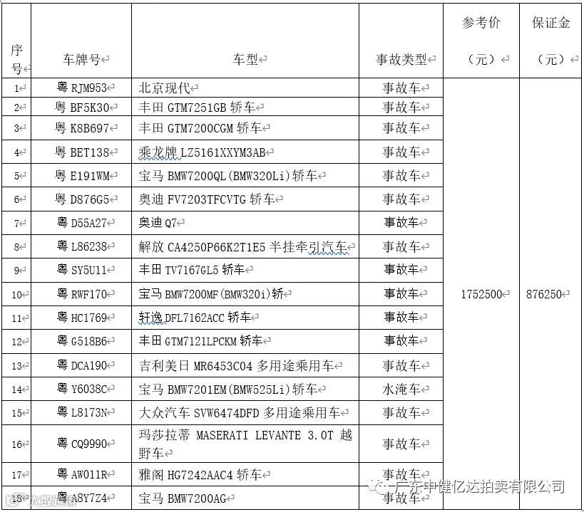 广东中健亿达拍卖有限公司拍卖公告