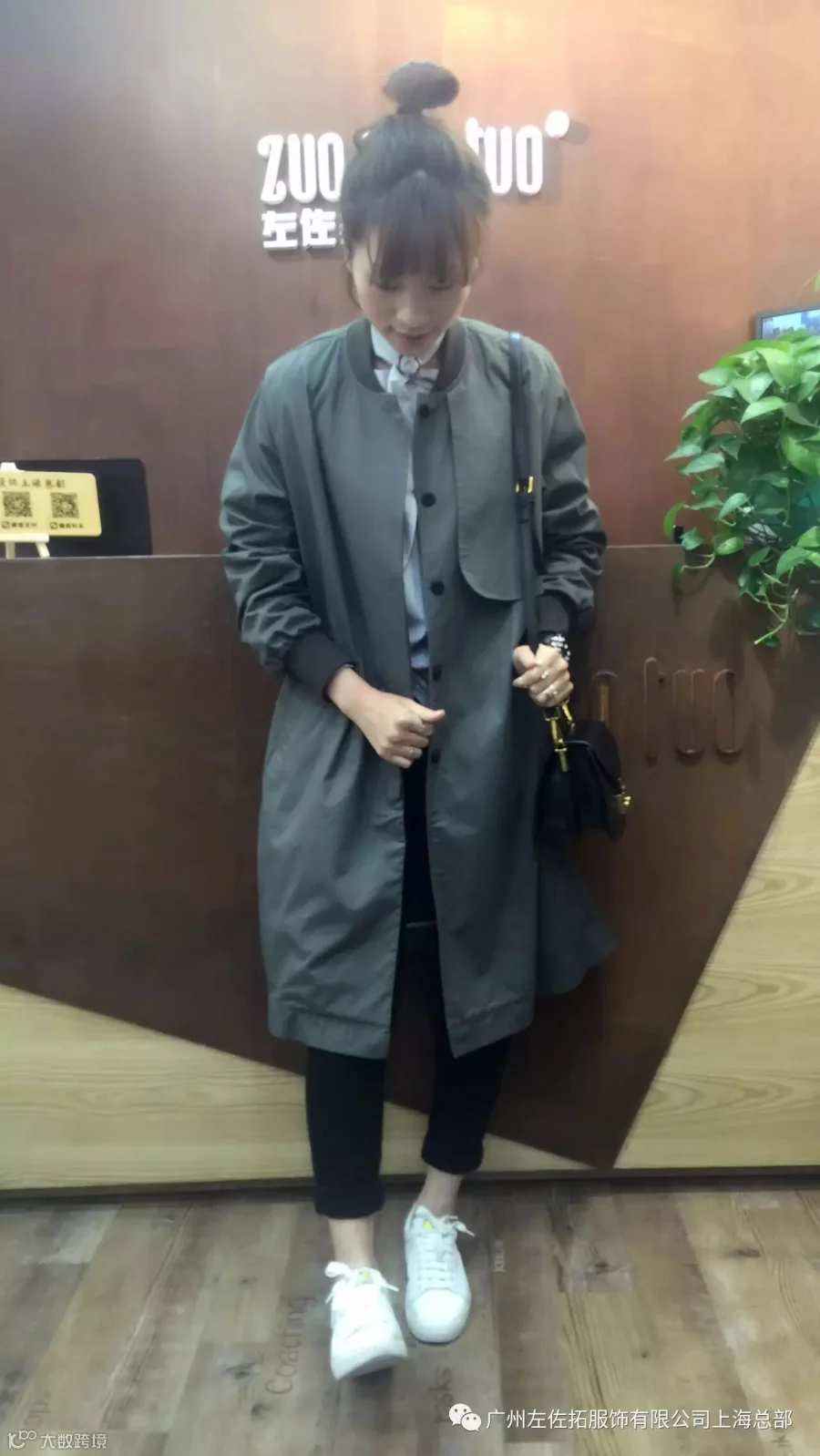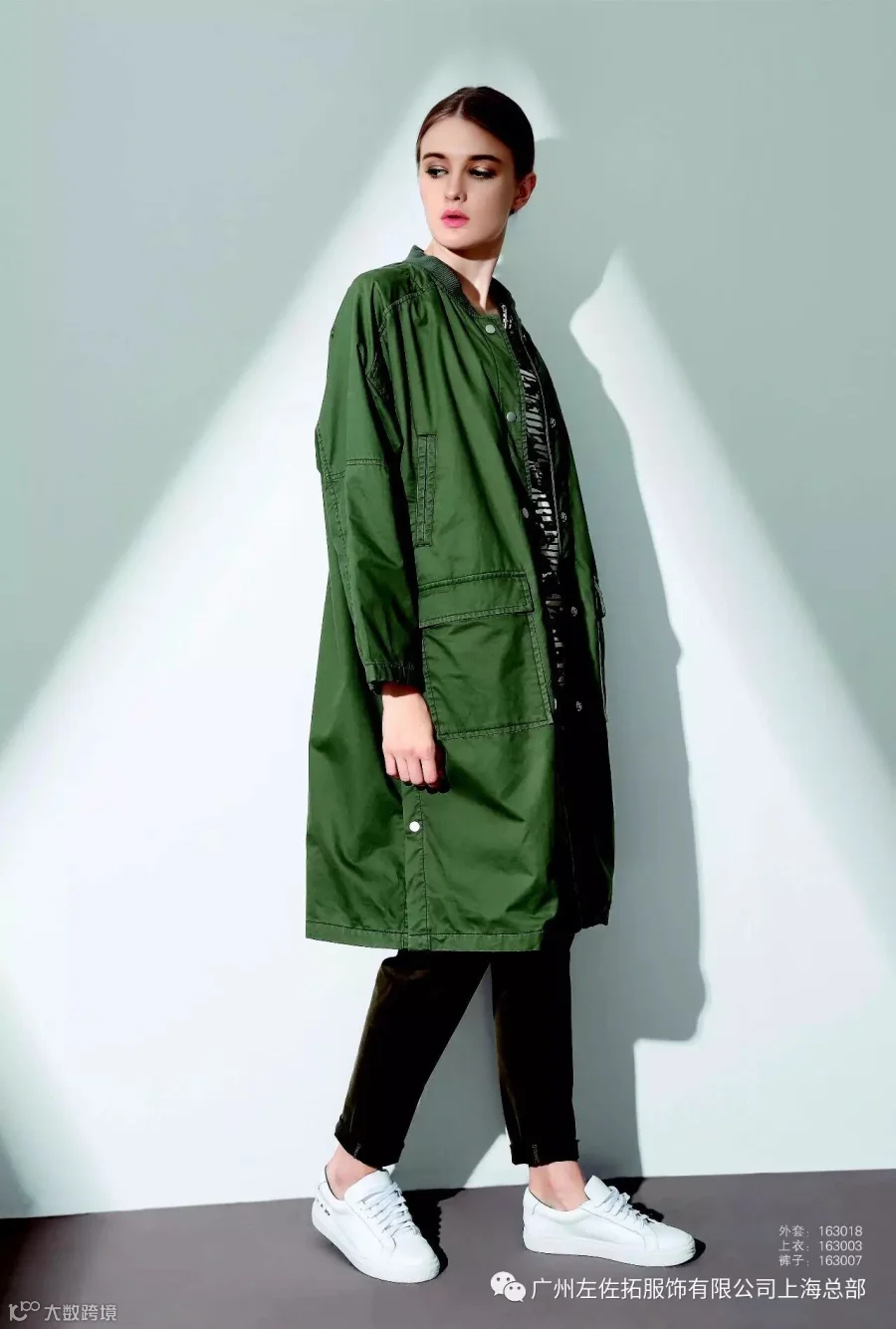 大衣和板鞋这对cp能让你从秋天时髦到春天!简单款式的墨绿色大衣搭配迷彩T恤铅笔裤,用极简的款式展现出女性最细腻优雅的一面。