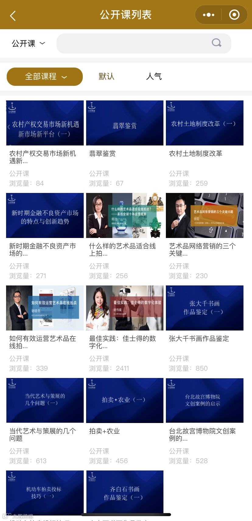 为积极有序推进拍卖行业复工复产,中拍协线上拍卖公开课在文物艺术品方面,特邀博物馆专家和熟悉市场的里手讲授翡翠和古籍的收藏知识;在农村产权交易方面,特邀自然资源部研究机构专家和地方农村政策执行者,分享农村土地制度改革和交易市场等话题内容;在不良资产方面邀请到拥有近20年投资、资管经验资深人士及商业银行资产保全部门一线管理者对不良资产的特点趋势及催收保进行专题讲授;同时围绕拍卖行业,邀请到相关领域专家对新技术与拍卖产业应用、机动车拍卖领域市场发展进行分析研判。这些陆续上线的线上拍卖公开课在不同程度上满足了从业者的需求,给从业者在疫情期间提供了很好的充电平台和机会,在行业内以及社会上收到了良好的效果。