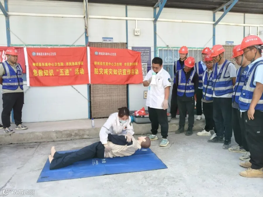4月28日,中铁七局永柳高速项目三分部联合柳城县东泉镇卫生院,在6#拌合站开展大风“叫应”机制应急演练。