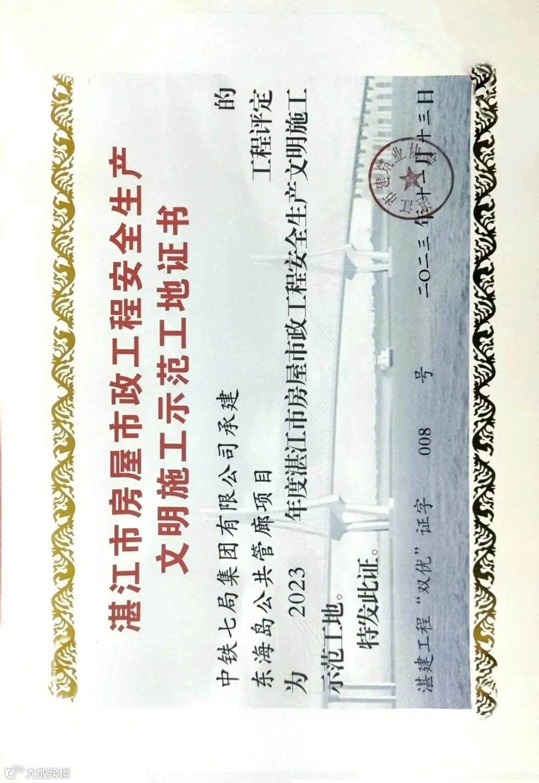 在海域钢桁架吊装中,项目团队通过精准定位技术,提高了吊装过程中施工便桥的安全性,大幅提升了工程效率和质量。目前,项目已授权实用新型专利2项,申报发明专利4项,发表研究论文3篇,申请《海相淤泥大直径摩擦桩侧向位移计算软件》软著1项。参与研究的《深厚软基安全管控关键技术及应用》和《滨海软土工程力学特性精准表征及高效建造技术》分别荣获中国交通运输协会二等奖和广东省力学学会科学技术奖(技术进步奖)二等奖,为行业技术进步贡献了力量。