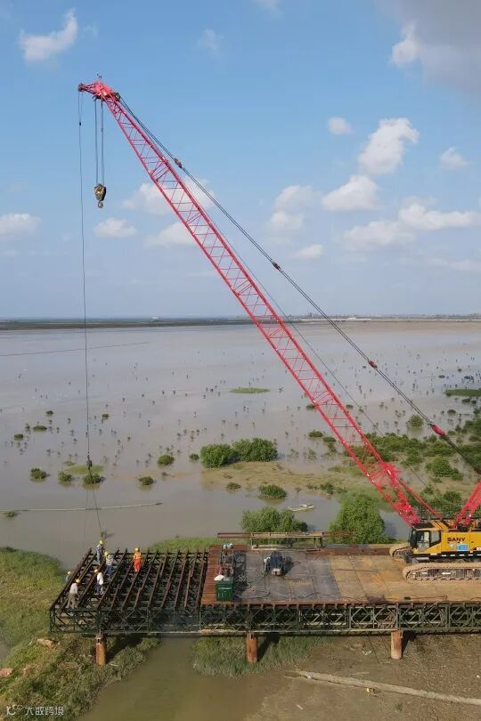 项目团队与中山大学合作,针对海域施工的特殊性,开展了“亚热带湿热环境海域化工管廊施工安全控制及建造关键技术研究”课题。研究内容涵盖“亚热带湿热环境中穿越淤泥层大直径摩擦桩质量控制技术”“海域施工钢便桥稳定及吊装大型钢桁架安全控制技术”等,有效解决了海域施工中的技术难题。
