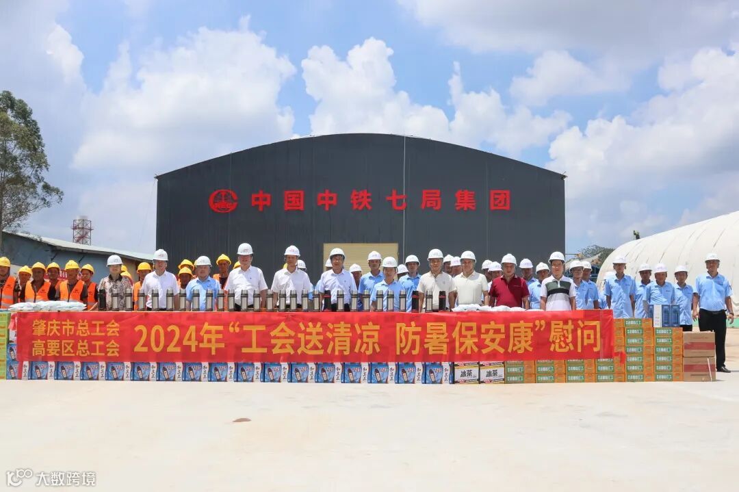7月5日,肇庆市人大常委会党组成员、副主任、市总工会主席张思辉一行到广湛铁路项目十二标开展以“工会送清凉 防暑保安康”为主题的慰问活动。公司党委书记、执行董事赵晓路陪同慰问,共同为奋战在一线的建设者们送去了夏日的清凉与关怀。