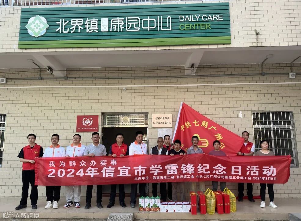 3月5日,中铁七局广州公司阳信高速三分部组织“雷锋日”主题活动,活动邀请信宜市总工会、北界镇工会参加,探访当地困难户和孤寡老人。阳信高速三分部的青年志愿者们前往信宜市北界镇养老院中,与老人们聊天交流,了解他们生活情况和日常需求,并为老人们送去食品、日用品等物资。