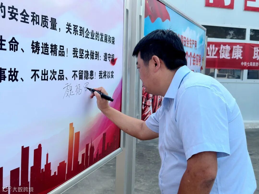 宣誓完毕后,各单位有序开展签名活动,在印有“人人讲安全、个个会应急”主题的条幅上郑重签下自己的名字。安全生产月期间,公司将组织开展安全生产倡议、员工签名、理念研讨、安全培训、安全隐患排查、安全管理座谈会、应急演练、安全宣传咨询日等18项形式多样的宣教活动,带动全体员工深刻理解誓词内涵,提高安全质量意识,并在实际行动中贯彻落实,确保活动取得实效。