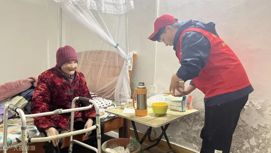 在广东省惠州市惠城区湖山村的老式居民楼中,青年志愿者们身穿鲜红的志愿服,头戴鲜红的志愿帽穿行其中,与街道工作人员一起走入孤寡老人家中,同老人们唠家常,为他们送上了大米、食用油、牛奶等生活物资。今年77岁的张大娘开心的说:“远远就看到你们鲜红的衣服了,每次你们过来,我都特别开心,感谢政府和企业对我的关怀,因为你们的照顾我们并不孤单。”