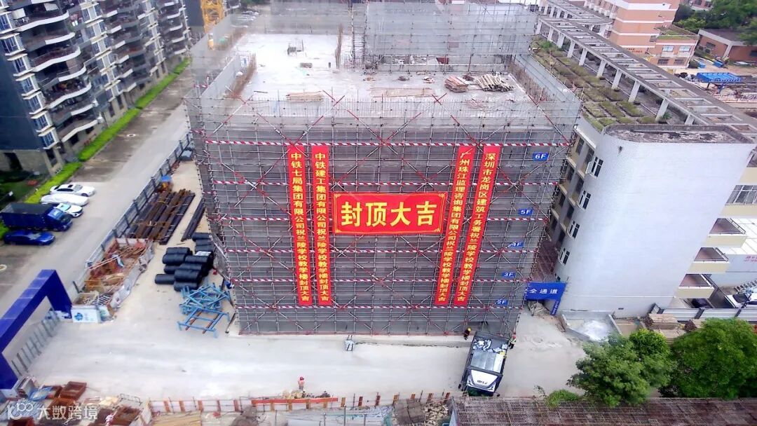 8月9日,随着最后一车混凝土浇筑的完成,中铁七局深圳坪地兰陵学校扩建工程新建北侧教学楼主体结构顺利封顶,标志着该项目的建设取得阶段性胜利。