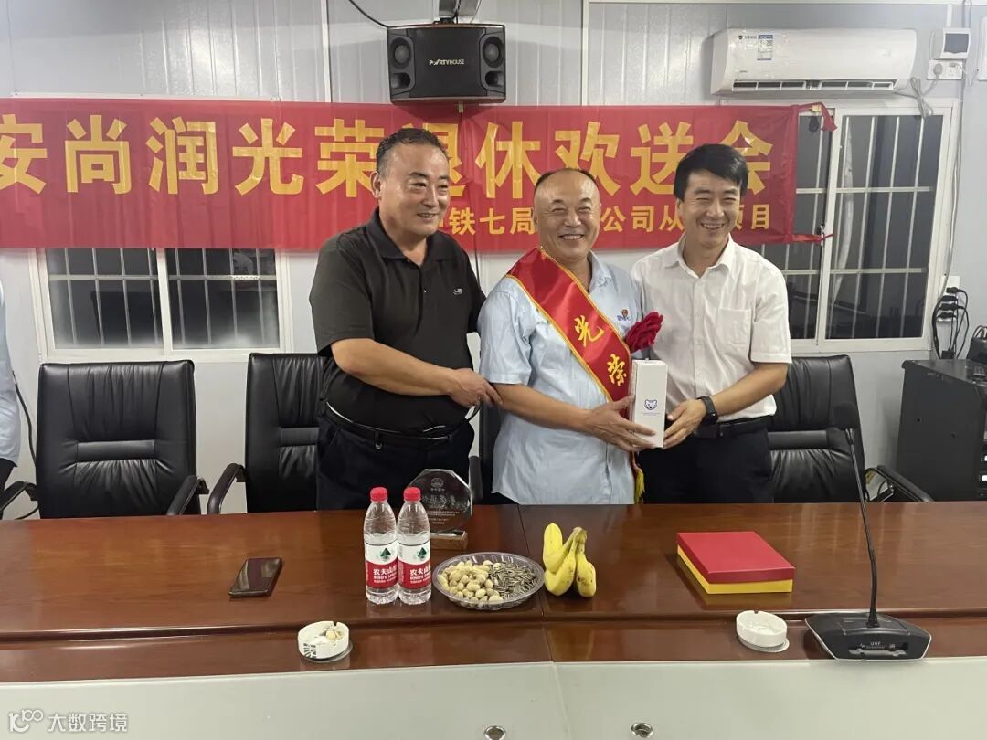 6月29日,中铁七局广州公司从埔项目在项目部会议室为退休职工安尚润同志举办光荣退休欢送会。