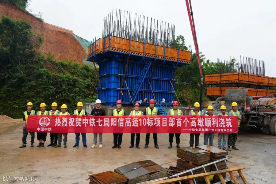5月9日,中铁七局广州公司阳信高速10标全线首个高墩开始浇筑,标志着该工程进入墩柱施工的新阶段。