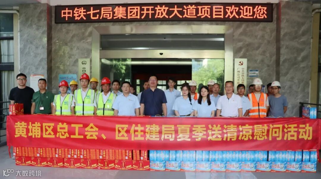 7月25日,黄埔区住建局工会主席、二级调研员黄榕清,区总工会常务副主席陈志伟一行到中铁七局广州公司开放大道项目开展夏季送清凉慰问活动。