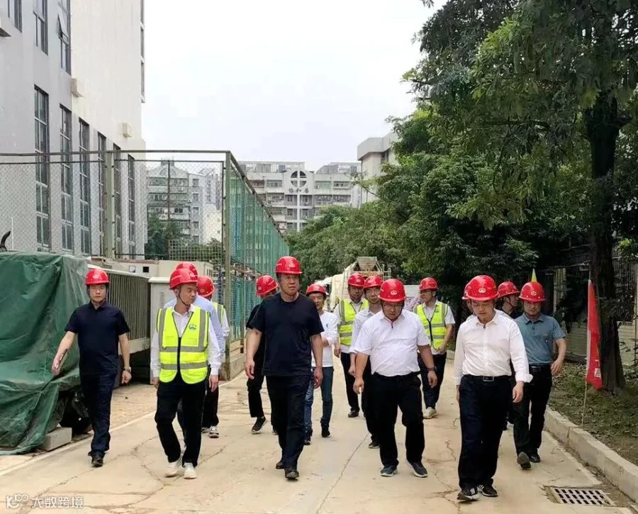 4月12日,中铁七局广州公司总经理、党委副书记田德成到深圳坪地兰陵学校扩建项目调研指导工作。