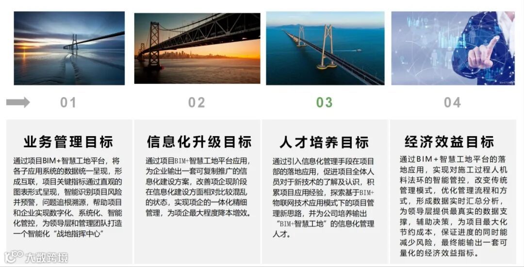 开放大道项目涉及隧道工程、道路工程、交通工程、桥梁工程、电力管沟、给水排水工程、照明工程和园建工程等多个专业,任务重工期紧,施工难度大,协调组织要求高,采用BIM+智慧工地平台辅助项目可实现精细化管理。