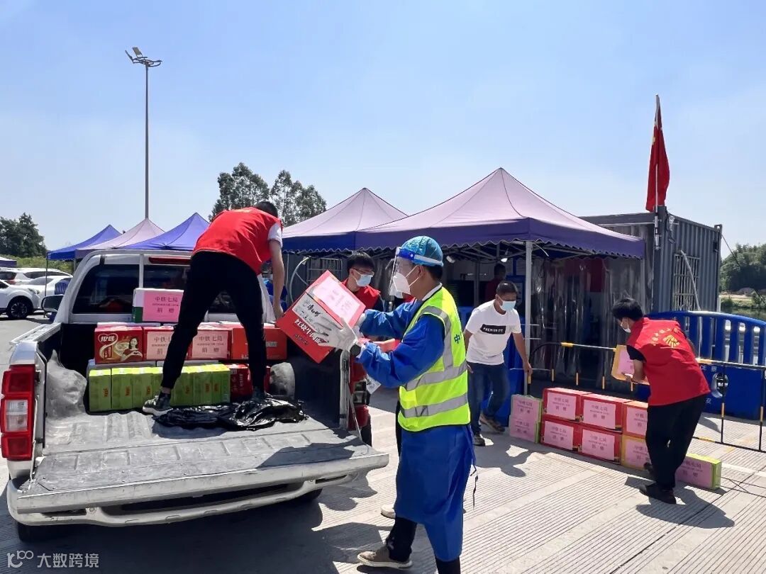 志愿者了解到龙头村有行动不便的老人后,项目部派出专车接送老人到核酸检测点,帮助老人顺利完成核酸检测,并为防疫检查点送去矿泉水、八宝粥、方便面等生活物资。