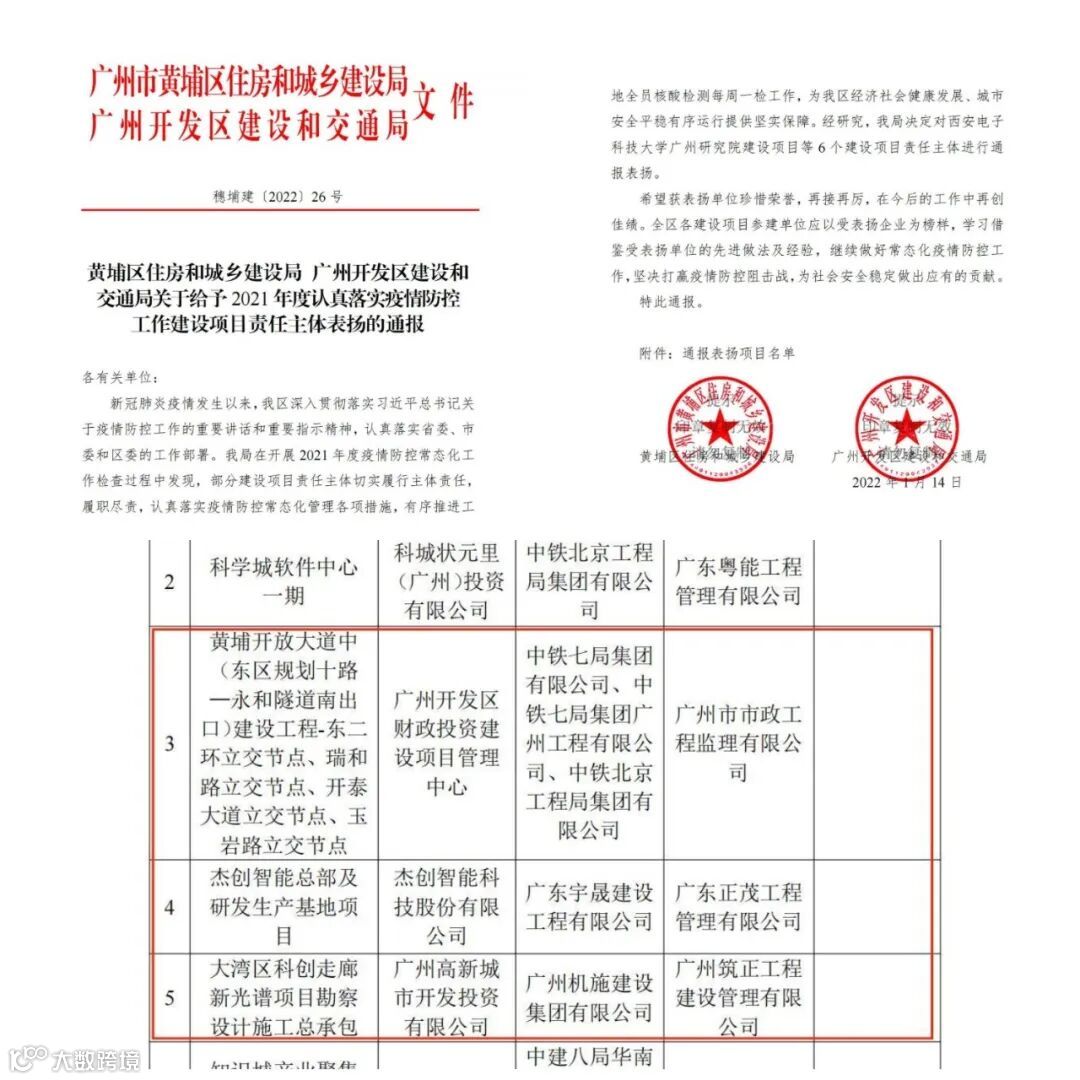 中铁七局广州公司承建的广州市黄埔区开放大道项目是广东省重点工程,被称为“南北交通大动脉”“黄金轴带”,项目全长约45.6公里,道路等级为城市主干道,双向8车道,设计速60km/h。总投资约137亿元,工期30个月。项目线路贯穿黄埔南北,串联起知识城、科学城、临港经济区和生物岛四大功能组团,加快消除了地域之间发展不平衡、有差距的历史问题,同时加强了黄埔区与外部的交通联系,是广州市域路网环线中的一个重要组成部分。