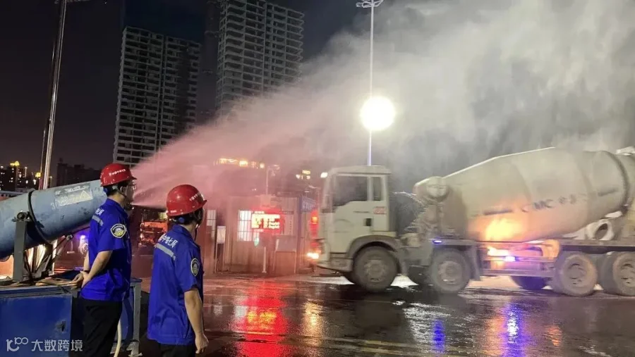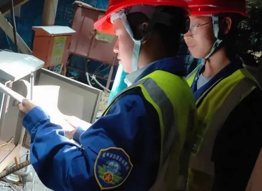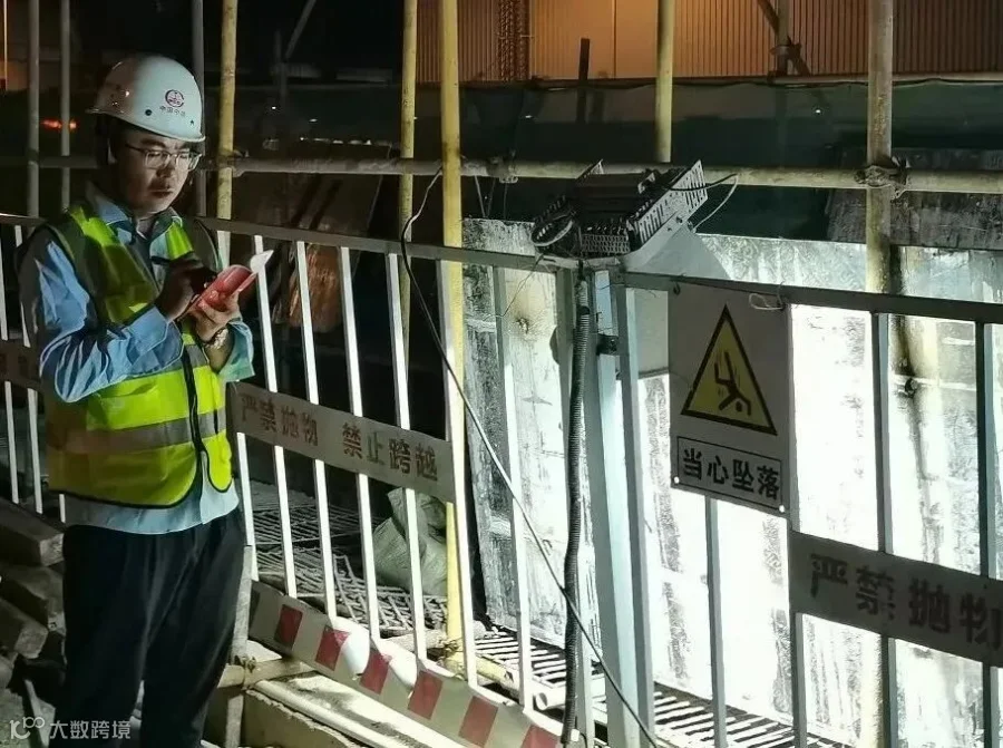 岗员夜间检查龙门吊红外限位