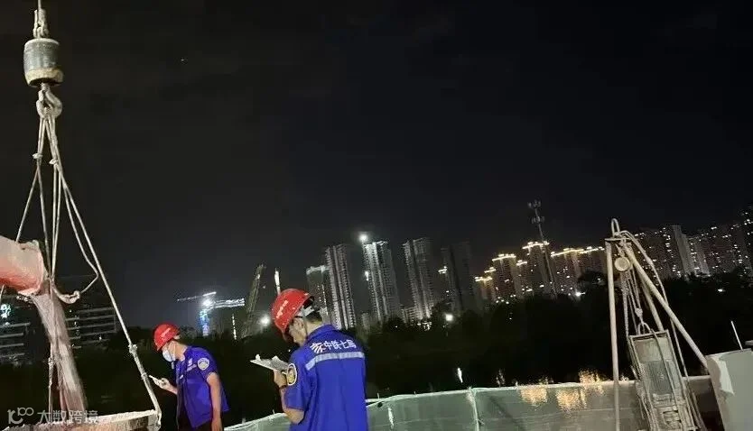 银洲湖项目青年安质岗主动作为,在1#预制梁场进行浇筑作业的过程中全程跟岗,做好安全培训、现场模板检查、夜间照明设备检查等安全工作,保证预制梁场零事故、高质量、高效率生产。