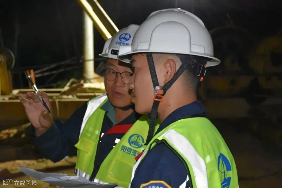 菏兰项目青安岗岗长程鹏远检查夜间吊装作业施工情况
