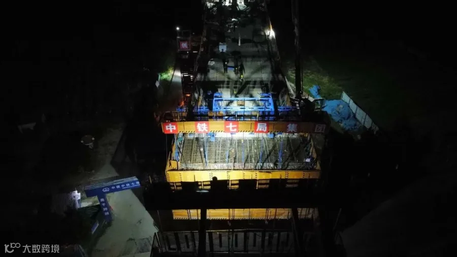 目前,全线桩基已完成89%、承台已完成80%、墩身已完成76%、连续梁已完成53%,申报《高速铁路高墩悬浇梁工程中的钢绞线预紧装置》等三项国家实用新型专利,实现安全生产600天。