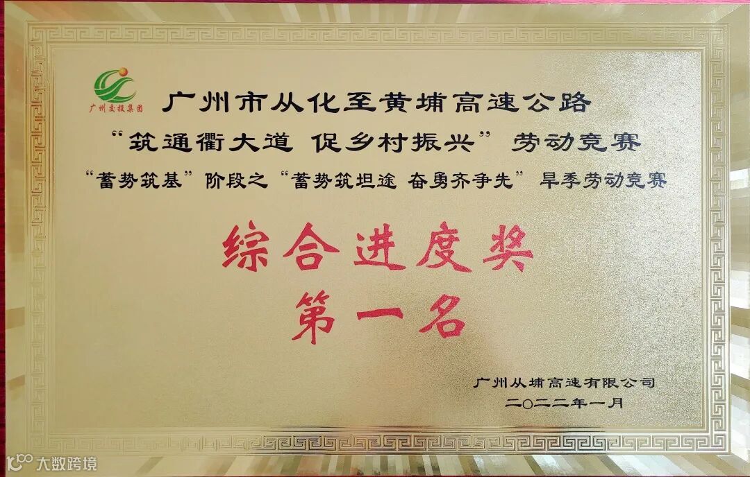 1月21日,广州从埔高速有限公司举行“蓄势筑基”阶段“蓄势筑坦途 奋勇齐争先”旱季劳动竞赛表彰会,中铁七局广州公司从埔项目荣获综合进度奖一等奖及关键节点奖,获得业主奖励230万元,三位项目管理人员获得“优秀建设人员”荣誉称号,公司党委副书记、总经理田德成出席会议并讲话。