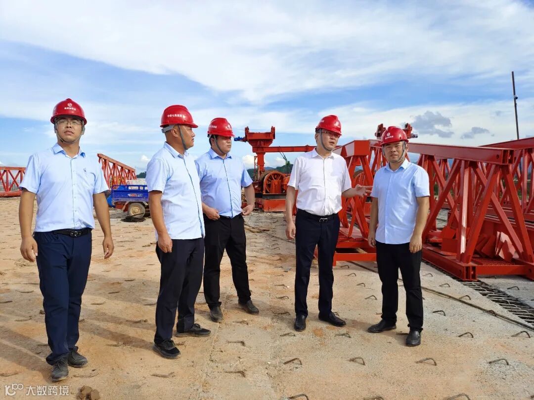 在龙头枢纽立交桥,赵晓路仔细了解预制梁架设及架桥机拼装情况,指出项目部要持续优化施工组织,如期完成各项节点,确保预制梁场的施工生产,并对桥梁分公司提出多元化经营思路;
