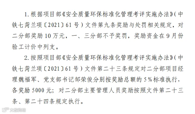 近日,在中铁七局集团新建菏泽至兰考铁路9月份质量安全标准化管理考核通报中,中铁七局广州公司获得综合考核第一名。据悉,该项目在集团公司综合考核中连续两次摘得桂冠。