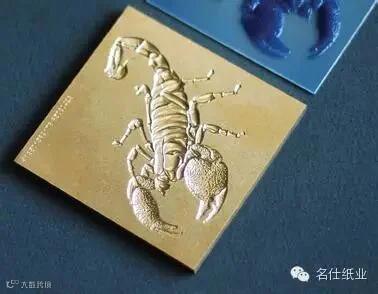 经过立体烫金技术加工后的产品呈现浮雕状的立体图案效果,设计师在为立体烫金工艺选择纸张或其他载体材料时要小心谨慎,过薄或韧度差的纸张会导致大面积裂痕等问题。