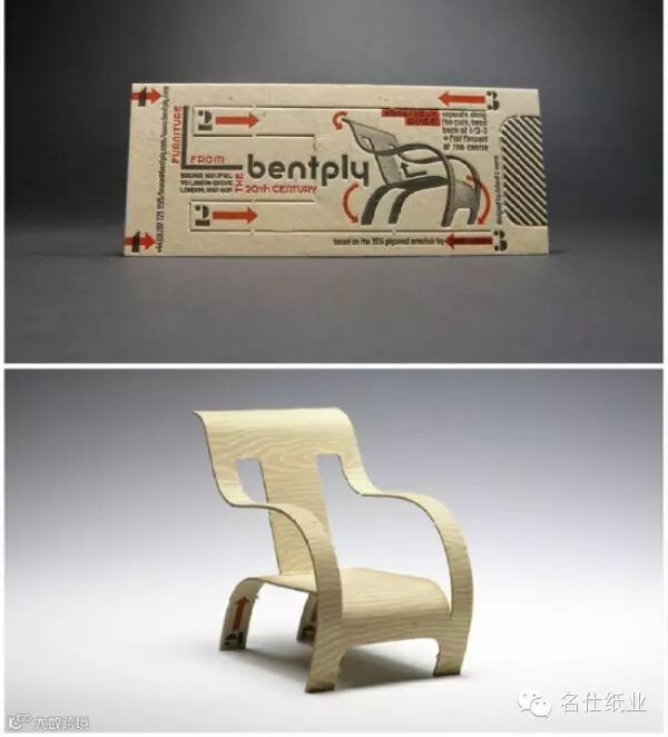 设计师 Richard C Evans 为曲木家具厂商 Bentply 设计了一款 3D 名片,上面还有一些折痕,沿着这些折痕把纸撕开,并根据名片上的箭头进行折叠,你就可以得到一把迷你曲木椅子。