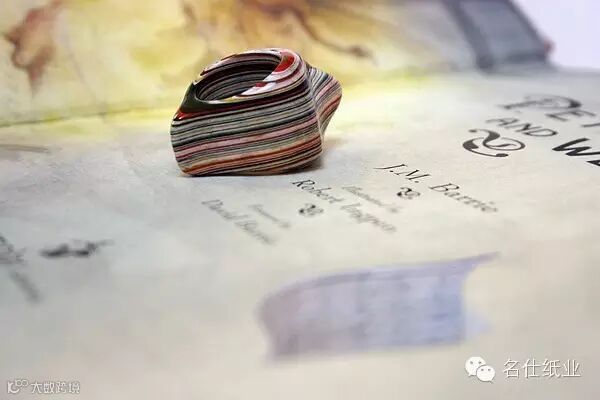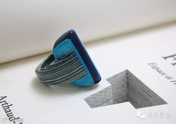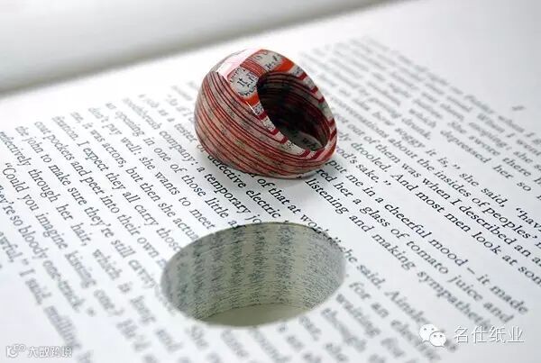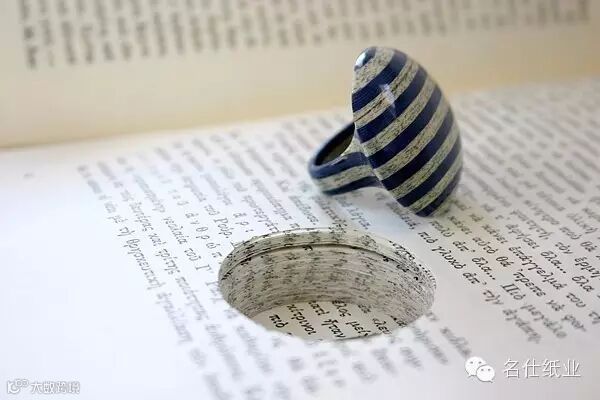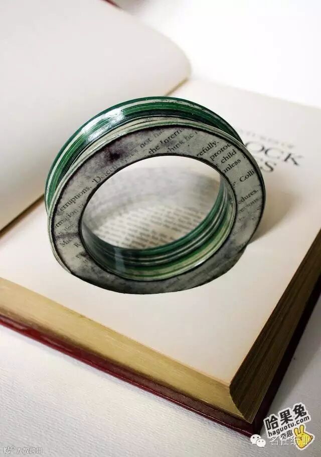 艺术家Jeremy May不仅酷爱书籍,同时也将书籍作为其艺术品的原材料。他往往喜欢在书本里钻出一个洞,再将挖出来的几百层纸压在一起,进行打磨抛光,于是就有了你看到的这些纸戒指,并且它们还可以重新放入书本里面的洞中。书本成为了一个天然的首饰盒,既不乏首饰的绚丽,又带有书本浓浓的文艺清新。