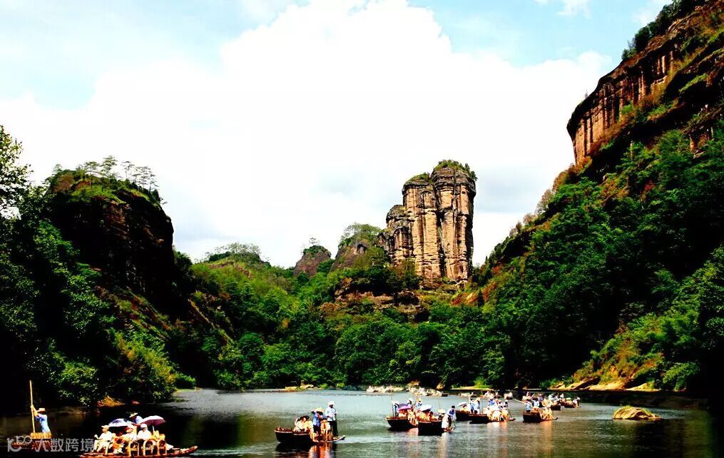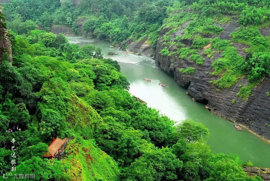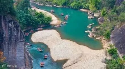 中国最美溪流——武夷山九曲溪。可谓舟行碧波上,人在画中游。