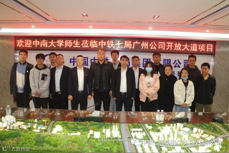 12月4日上午,中南大学师生代表到中铁七局广州公司学习交流,同时对公司体量最大的市政项目开放大道项目进行了参观,公司人力资源部,开放大道项目相关负责人参与交流。