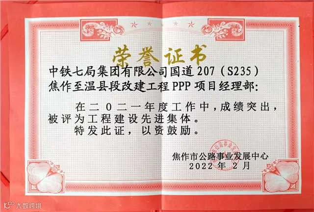 近日,国道207项目经理部再获“2021年度焦作市公路系统工程建设先进集体”荣誉称号,自建设以来,国道207项目已连续三年获得“焦作市公路系统工程建设先进集体”荣誉称号。