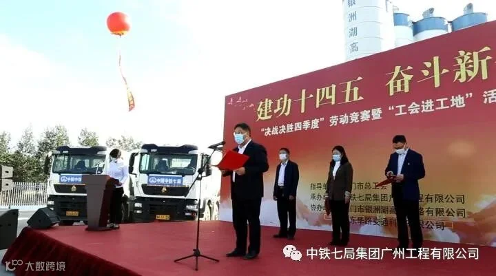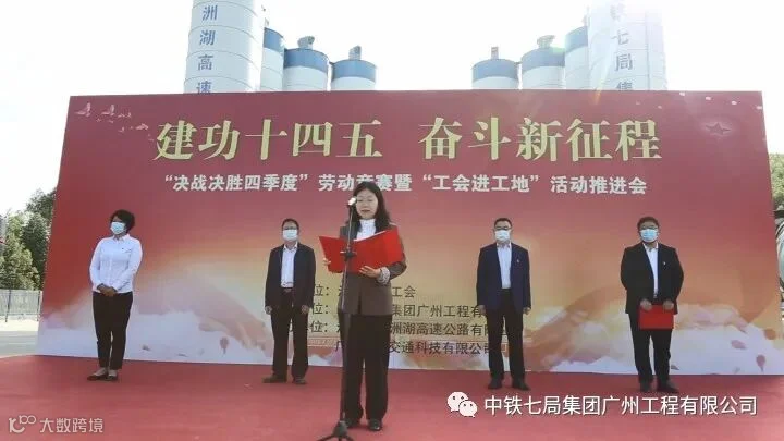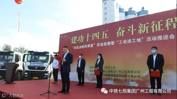 ● 江门市银洲湖高速公路有限公司副总经理、工会主席文明举强调,中铁七局广州公司在江门市银洲湖高速公路有限公司“助力大湾区、建功银洲湖”第一阶段劳动竞赛中取得可喜成绩,在第二阶段劳动竞赛顺利开局的关键时期,中铁七局广州公司选择今天举行“决战决胜四季度”劳动竞赛暨“工会进工地”活动推进会显得恰逢其时!