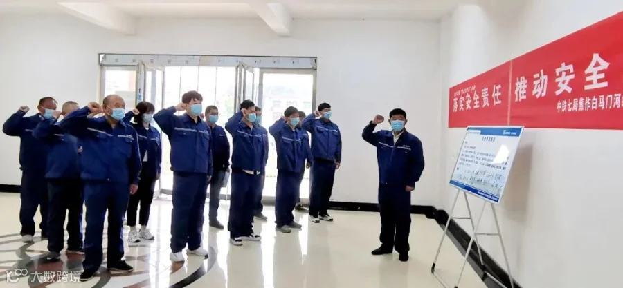 “我是一名中国中铁员工,我工作的安全和质量,关系到企业的发展和荣誉!我郑重承诺:忠诚企业、恪尽职守、珍爱生命、铸造精品!我坚决做到:遵守规章制度、遵守规范规程、遵守劳动纪律,不出事故、不出次品、不留隐患!我将以实际行动,确保企业生产安全、产品优质!”