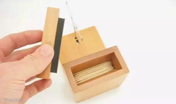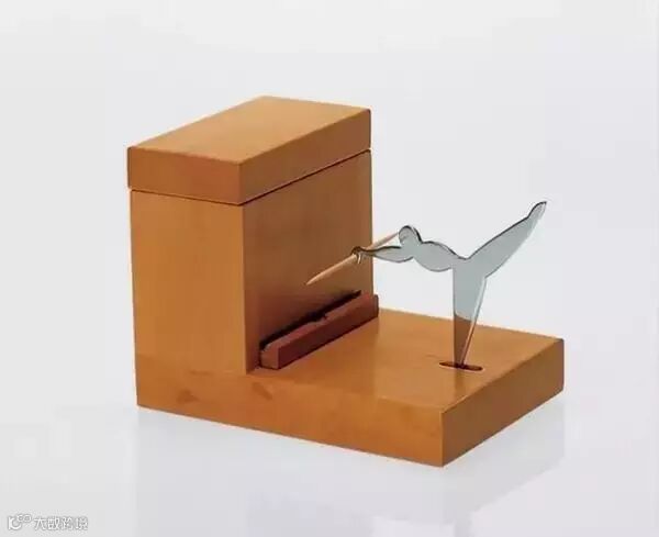 由一个盒子和一个金属小人构成。使用时只要打开盖子,将牙签装在木盒中即可