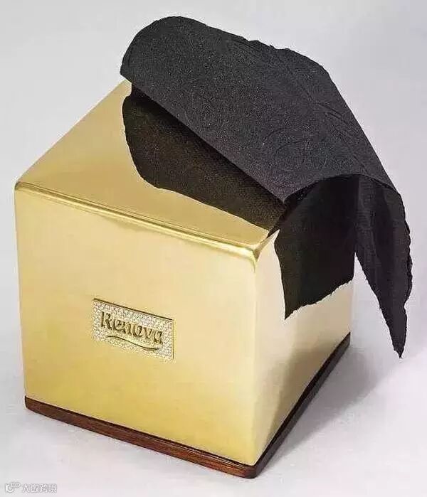 它家的黑色手纸系列更是火爆到不行,为纪念黑色手纸卖出了100万卷,Renova还推出过一款钻石黄金厕纸盒,售价约100万元。买的人可以终生获赠黑色厕纸,不限量哦~