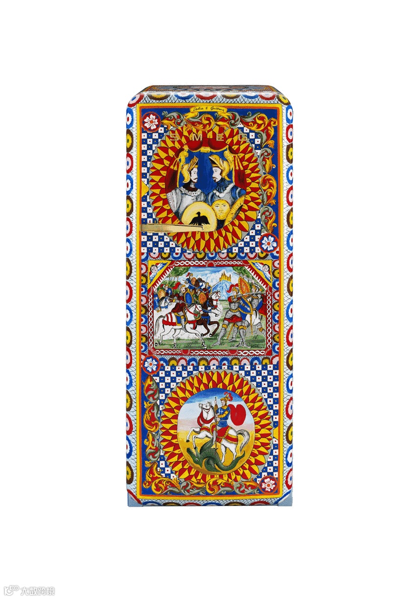 今年上半年,还与Dolce & Gabbana合作生产艺术冰箱FAB28系列。每台冰箱都是由西西里岛本土艺术家在冰箱表面手绘图案,并附上艺术家签名,耗时240个小时人工手绘,售价3万欧元,约合人民币22万+,限量100台,有钱还不一定买得到呢。