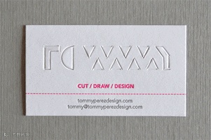 设计师Tommy Perez以"Business in the front, party in the back."这样的概念所设计的名片,不仅在名片正面传达了应该具备的商业讯息,也在背面暗藏了一个小心机:迷你互动式的纸雕设计。